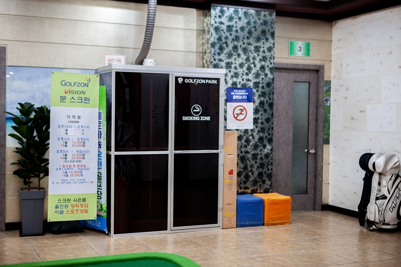 들어가자마자 깜짝 놀란 건 어떤 스크린골프장에서도 볼 수 없었던 로비에 대형 퍼팅연습 공간이 있다는 점이었는데요, 기다리면서 간단하게 연습해보기에 딱 좋습니다.